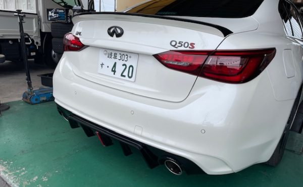 M村さまのスカイラインにディフェーザー取り付け、エアロ塗分け塗装させていただきました グロスブラック塗装のディフェーザー、白黒ツートンのリアウイング(∩´∀`)∩ フロントリップもグロスブラックとパールホワイトのツートン […]