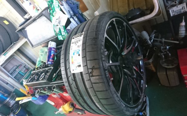 ポルシェについてるとかつータイヤ(*´ω`) 25扁平~ うっす!!( *´艸`) このゴムの薄さ・・・ オカモトさんも驚くね~きっと(*’ω’*)